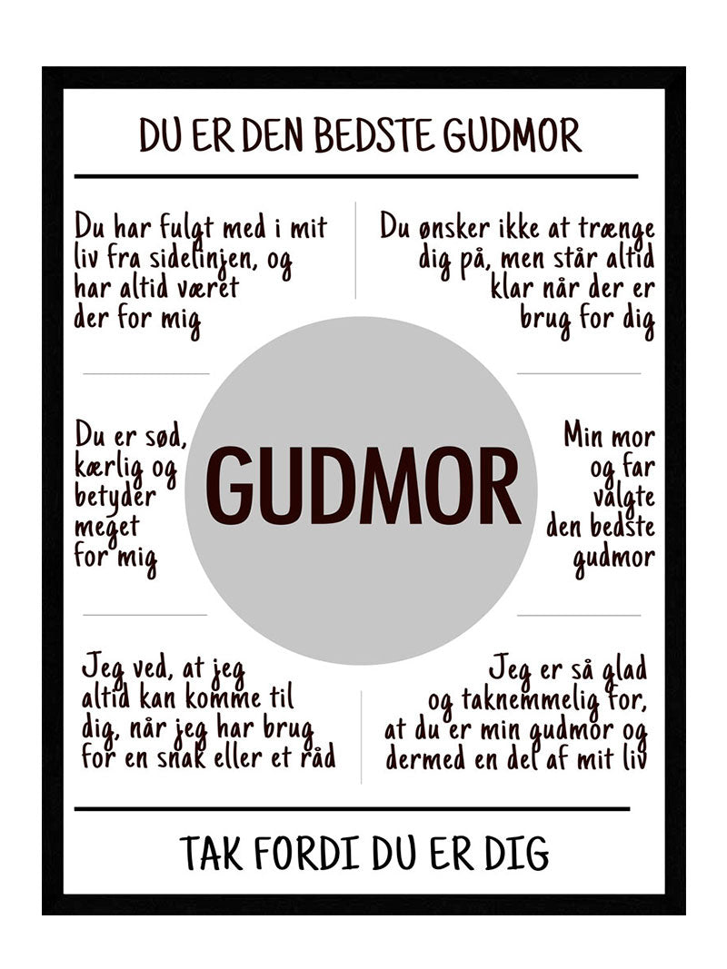 Har du den bedste gudmor i verden, og vil du gerne fortælle hende, hvor meget pris du sætter på jeres relation til hinanden? Så er vores gudmor plakat