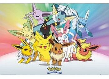 Pok 195 169 Mon Poster Plakat Eeveelutions 91 5x61cm er en fantastisk tilføjelse til enhver Pokémon-samling. Denne plakat præsenterer de populære Eeveelutions i en flot design.