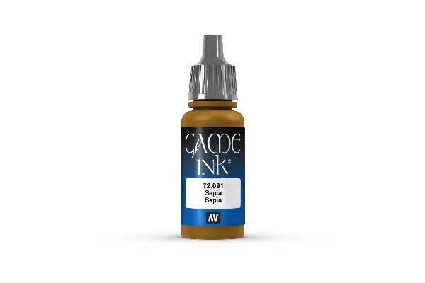 Vallejo Maling Game Color: Ink Sepia 17ml er en uundgåelig farve til dine maleprojekter. Denne akrylmaling er designet til at blive påført med pensel og giver et mat, ugennemsigtigt finish. Farven er udviklet i samarbejde med erfarne modelmalere, der fokuserer på fantasyfigurer og dioramaer.